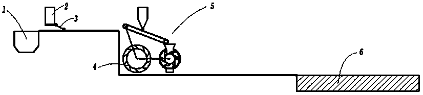 本發明的有益效果是:該發明采用水車,運用水流落差為動力來源,不需要消耗能源;在凈化步驟中采用給料乳化裝置,使凈水劑與水充分混合攪拌,本發明采用輸送皮帶為搓衣板花紋PVC輸送帶,使凈水劑輸送均勻,經硅膠刮板與板不銹鋼篩網的研磨,使凈水劑與水充分攪拌混合,得到充分溶解,有效提高凈水劑的使用效果;該發明結構簡單,投資成本低,運行成本低,采用的設備無復雜傳動部件,易操作。