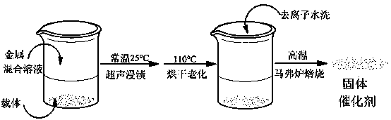 (2)取一定量的載體在金屬混合溶液中超聲浸漬一段時間,然后在110℃的烘箱中烘干老化一段時間;
