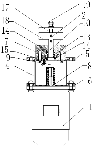 所述的電機轉(zhuǎn)軸在密封件上端電機轉(zhuǎn)軸為正多邊形結(jié)構(gòu),電機轉(zhuǎn)軸頂端為柱型螺紋結(jié)構(gòu)。