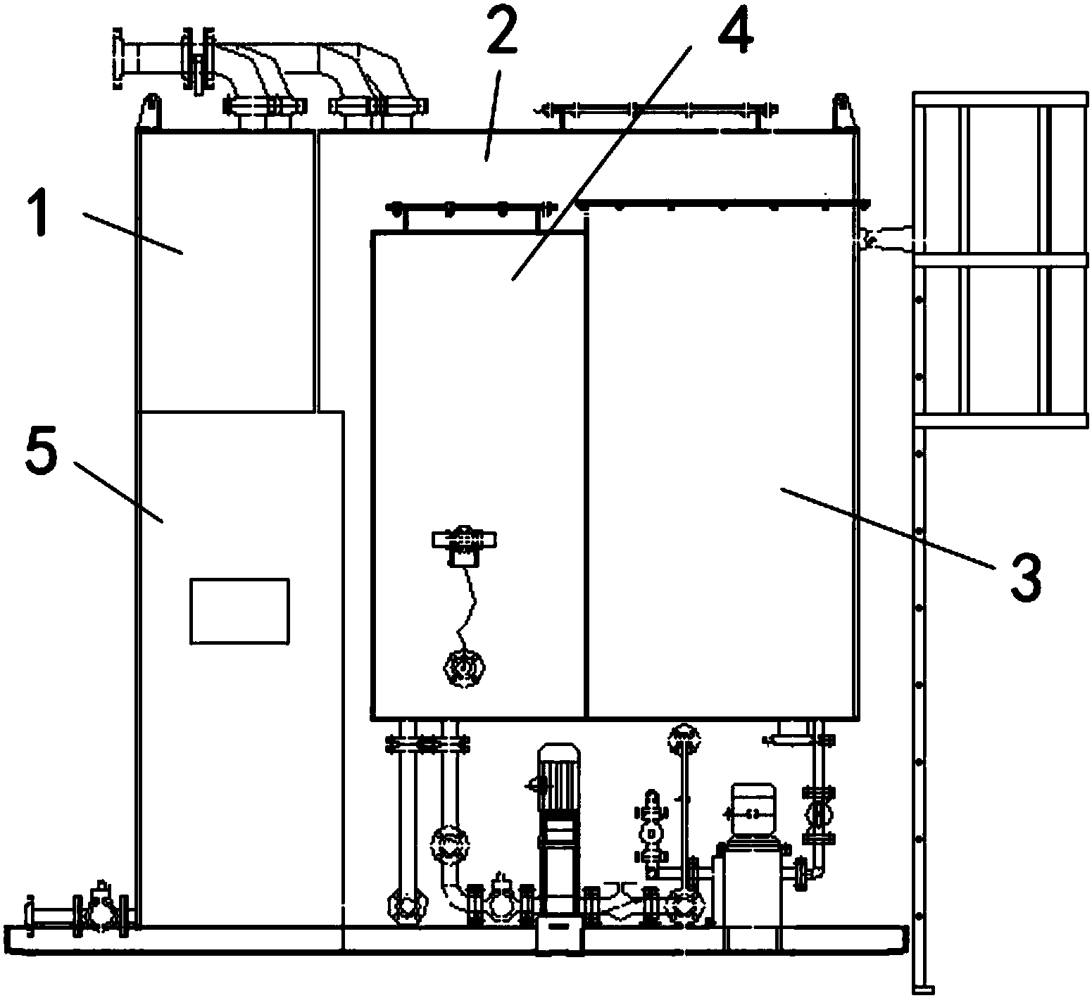 為了解決現(xiàn)有海上平臺生活污水處理裝置處理指標(biāo)單一,處理水平低、無法達到回用標(biāo)準(zhǔn)的技術(shù)問題,本實用新型提供一種一體化高效生活污水處理裝置。