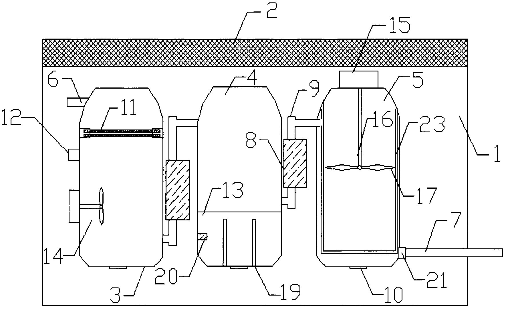 本實用新型所要解決的技術(shù)問題是提供一種油田壓裂返排液污水處理裝置以解決現(xiàn)有技術(shù)中導(dǎo)致的上述多項缺陷。