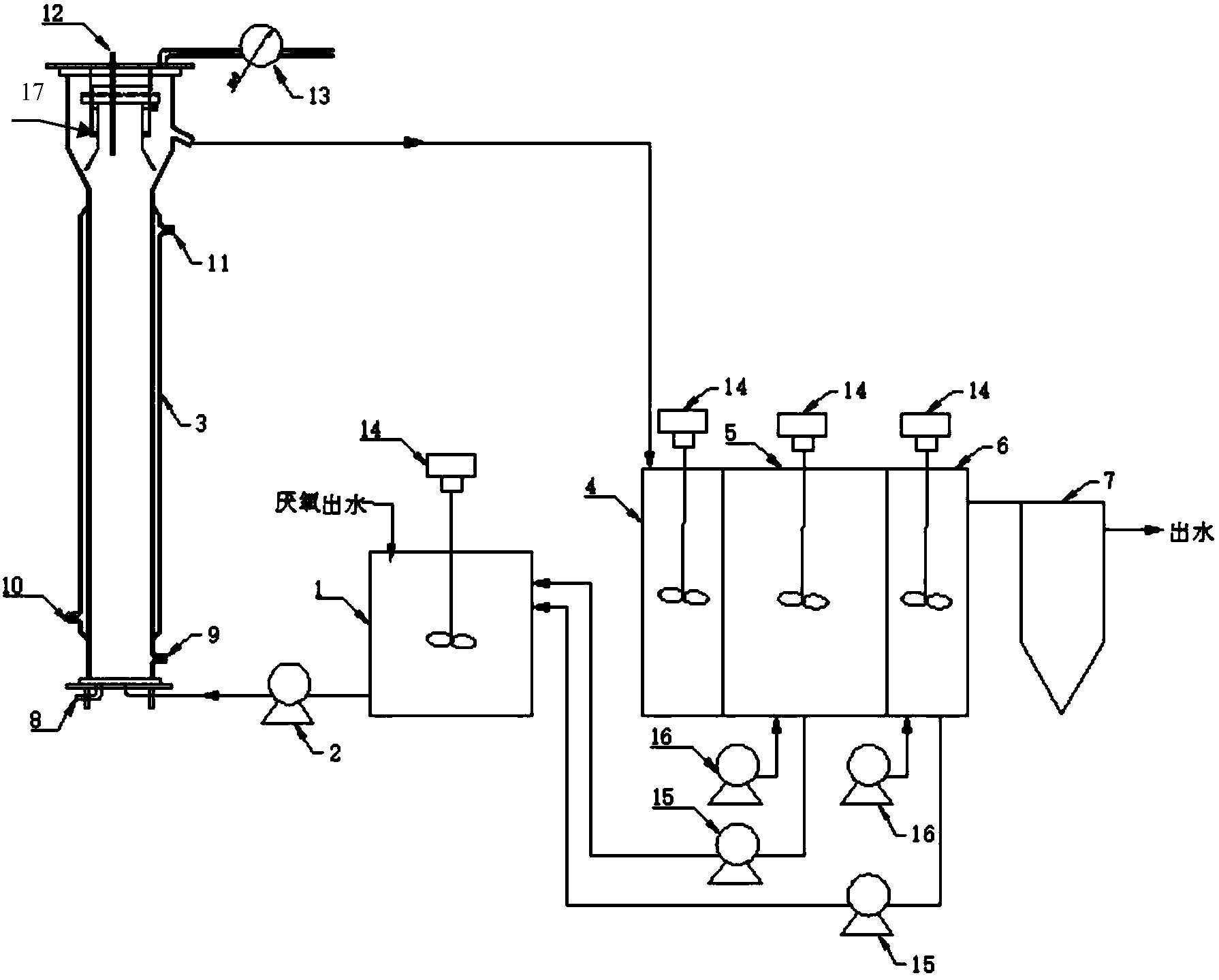本實用新型的目的是克服現有技術中存在的不足,提供一種用于高氨氮廢水生物脫氮的裝置,可用于對高氨氮、低碳氮比廢水的生物脫氮。
