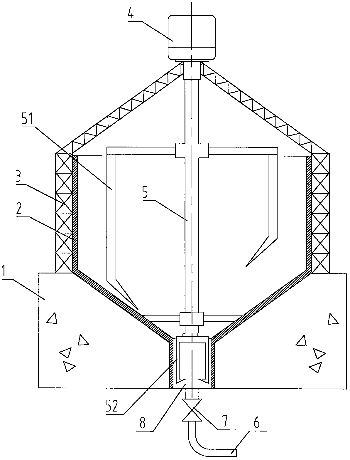 與現有技術相比,本實用新型的有益效果是:塑料槽體采用樹脂料帶螺旋纏繞搭接結構,攪拌槳表面設有塑料涂鍍強化層,防腐性能好,具有制造成本低,結構簡單,使用壽命長等特點,可顯著延長設備的整體使用壽命。