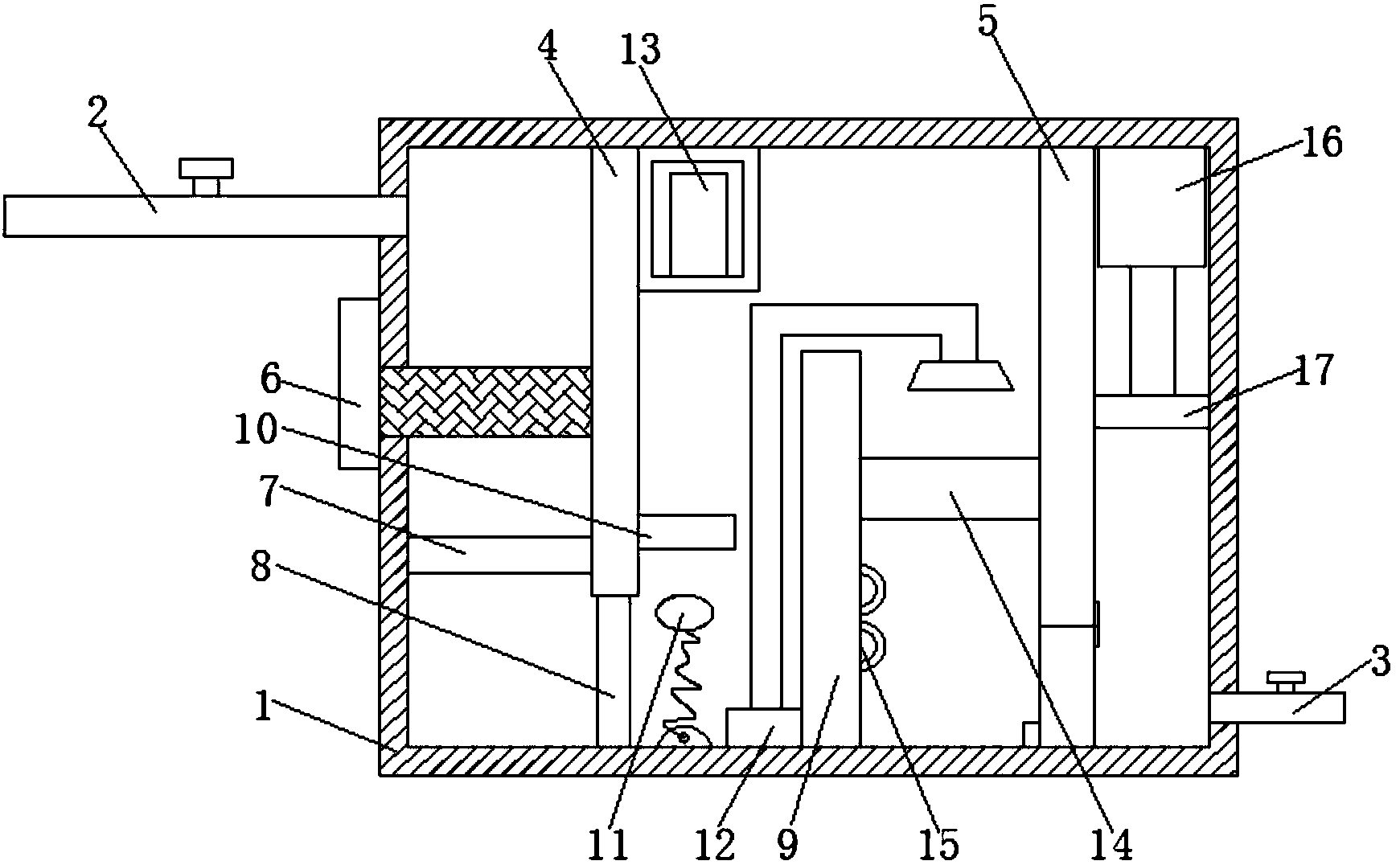 2.根據權利要求1所述的一種污水過濾環保裝置,其特征在于:所述過濾網板(6)為抽拉式網板,且過濾網板(6)由兩個孔徑密度不同的網板構成。