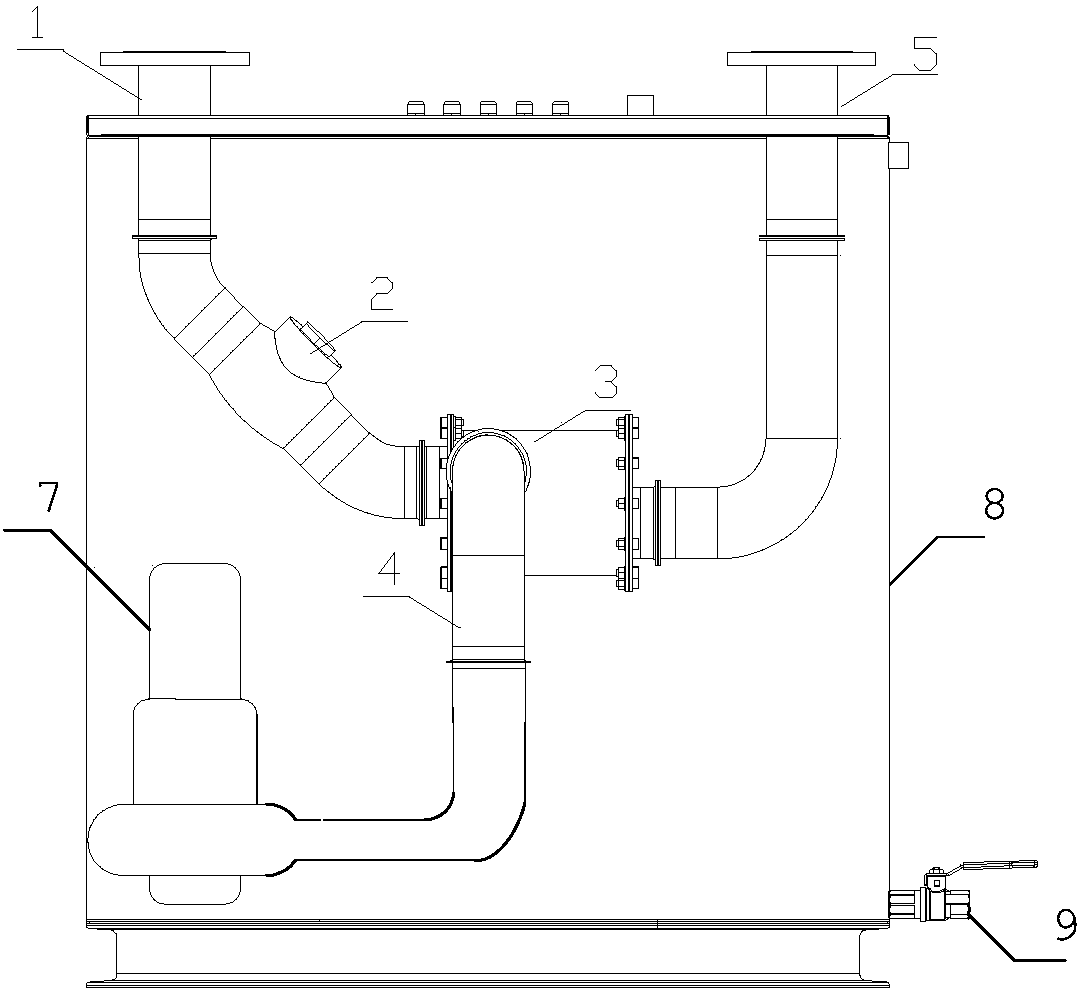 8.根據權利要求1-3、5、6中任一項所述的污水提升裝置,其特征在于,所述進水管傾斜段與水平面的夾角為45度。