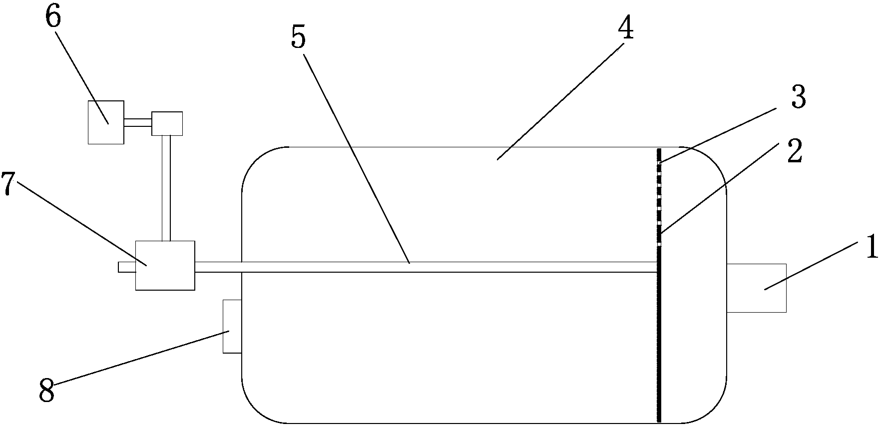 1.一種污水池的刮擦結構,設在污水池的內部,其特征在于,它包括一片橫板,所述的橫板上設有若干的孔洞,橫板的側邊貼在污水池的內壁上,所述污水池從側部插入一根螺桿與橫板連接,所述的螺桿與污水池螺紋連接,旋轉螺桿帶動橫板在污水池內移動,當橫板移動時,橫板的側邊與污水池的內部進行刮擦,所述污水池的外部設有驅動裝置用于驅動螺桿旋轉。