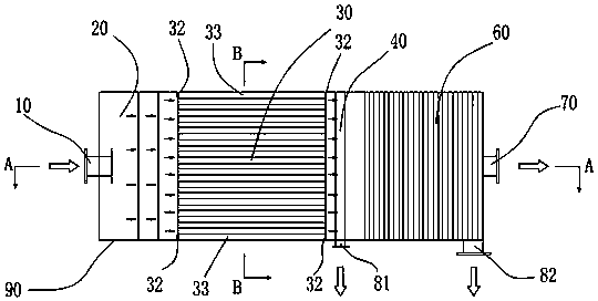 步驟4:污水進入到精細格柵區后先經過布水條均勻化后進入篩板,篩板將截留柵渣完成一級處理,處理完成的污水通過排水口排出,此步驟中若產生臭氣,通過排氣口排出。