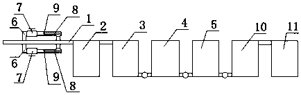 本實用新型具有以下優點:通過采用MBR處理和超濾的處理,使水中的COD、懸浮物等指標將大幅降低,通過在MBR裝置前部增設添加藥劑的沉淀裝置,降低了MBR裝置的處理工作量,處理效果更佳有保證。實現了固體藥劑的自動添加,并且添加量與水流流速成正比。