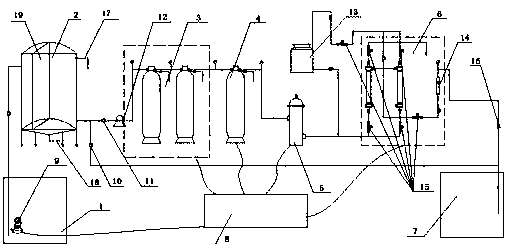 進(jìn)一步,所述復(fù)合沉淀池與產(chǎn)品水箱之間通過管路連通,并在管路上設(shè)有旁通閥。
