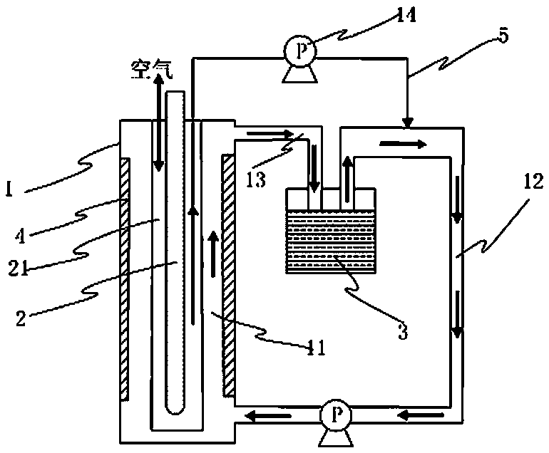 因此,針對上述的問題,本發明提出一種結構設計合理,能夠將紫外線殺菌消毒與促進酸化法有機結合并用,能夠對醫療廢水的有害有機物進行有效分解處理,而且具有避免二次廢棄物產生、處理時間短等優勢的廢水處理裝置。