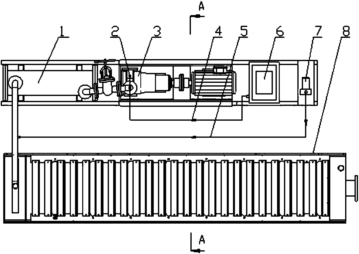 此外,為了方便控制,設置控制器,控制器與進水吸氣裝置、溶氣裝置、臭氧發生裝置、紫外線燈管和超聲波發生裝置分別單獨連接,實現對所有裝置的自動控制。