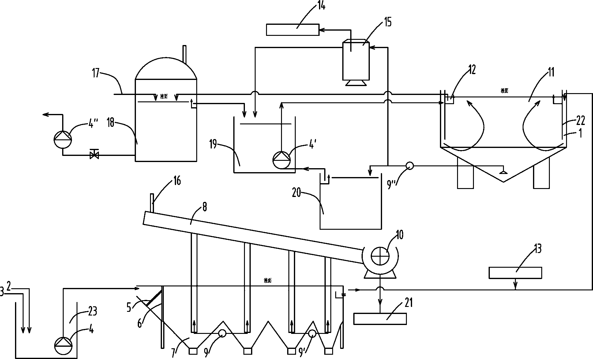 五、沉泥池(11)的上清液循環使用;