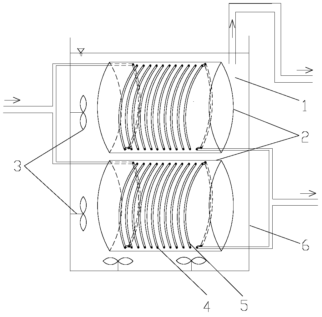 進一步地,本發(fā)明通過采用分段式的卷繞式結構的硅橡膠萃取膜管,與萃取液的接觸面 積大,占地小,且利于提高吸收效率,同時,避免部分硅橡膠萃取膜管堵塞或損壞后不易更換 的問題。