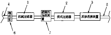在本實用新型一個較佳實施例中,所述機械過濾器與所述袋式過濾器之間還連接有混凝劑加藥裝置。