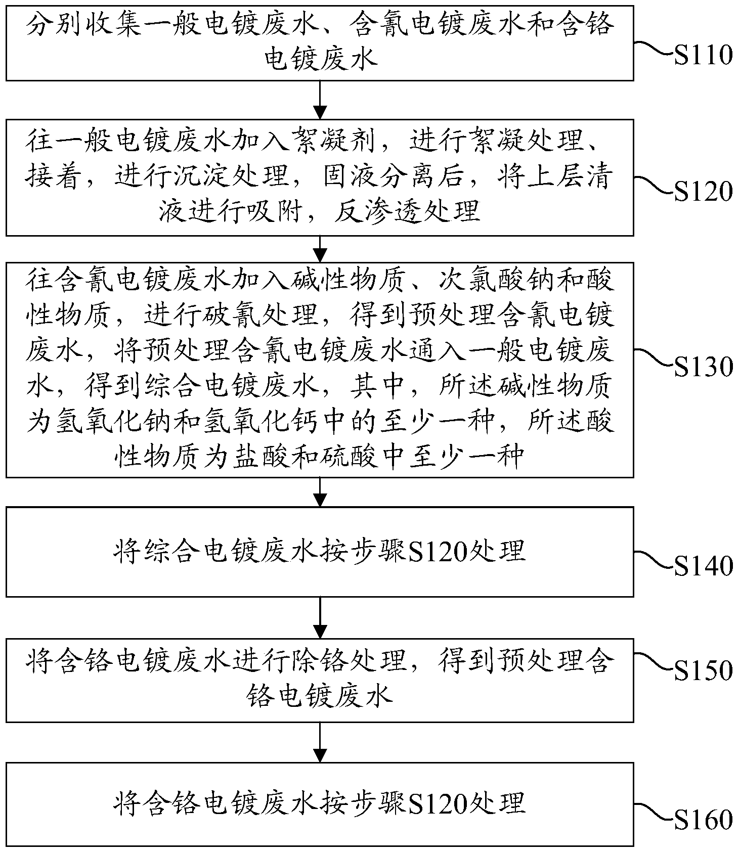 S140:將所述綜合電鍍廢水按所述步驟S120處理;