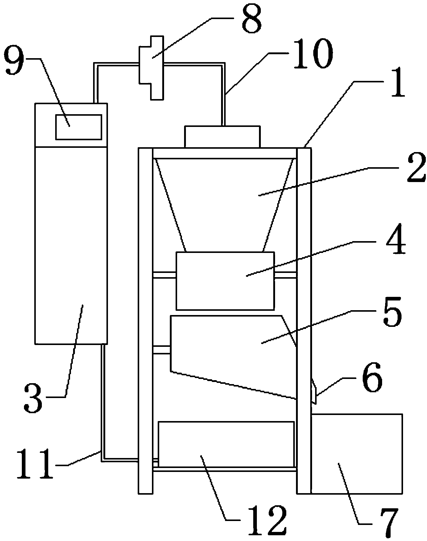 3.根據權利要求1所述的水處理劑生產用造粒設備,其特征在 于:所述料桶安裝在機架的右側上。