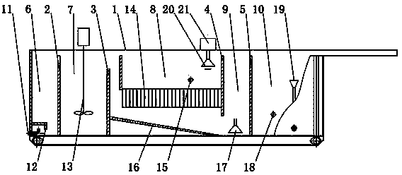 進一步的,所述電化學處理室的底部布置有向吸泥室傾斜的傾斜板。