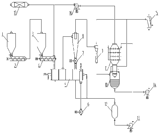 8.如權(quán)利要求1所述的一種節(jié)能型尾氣自惰式循環(huán)污泥干燥系統(tǒng),其特征在于:所述螺桿泵(2)、螺旋輸送器(4)、圓盤干燥機(jī)(5)、旋轉(zhuǎn)卸料器Ⅰ(6)、旋轉(zhuǎn)卸料器Ⅱ(7)、凝液泵(13)、洗滌泵(14)、循環(huán)風(fēng)機(jī)(16)上均設(shè)有流量計(jì)。