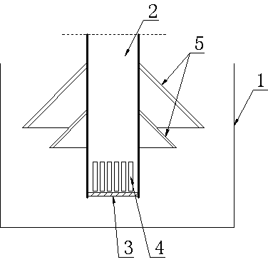 1.一種防翻泥的污水沉淀裝置,包括沉淀容器(1)和進水管(2),進水管(2)豎向安裝在沉淀容器(1)內,其特征在于:所述進水管(2)的下端設置有用于封堵進水管(2)的盲板(3),所述進水管(2)下端的側壁上開設有多個出水孔(4),所述出水孔(4)位于盲板(3)上方。