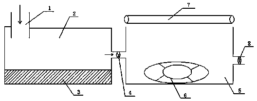 1.一種新型礦井污水處理裝置,其特征在于:包括進水管(1)、沉淀池(2)、活性炭層(3)、第一閥門(4)、污水處理池(5)、旋轉水泵(6)、紫外燈(7)和第二閥門(8);所述進水管(1)設置在沉淀池(2)一側;所述活性炭層(3)設置在沉淀池(2)底部;所述第一閥門(4)設置在沉淀池(2)和污水處理池(5)中間;所述旋轉水泵(6)設置在污水處理池(5)底部;所述紫外燈(7)設置在污水處理池(5)上方;所述第二閥門(8)設置在污水處理池(5)一側。