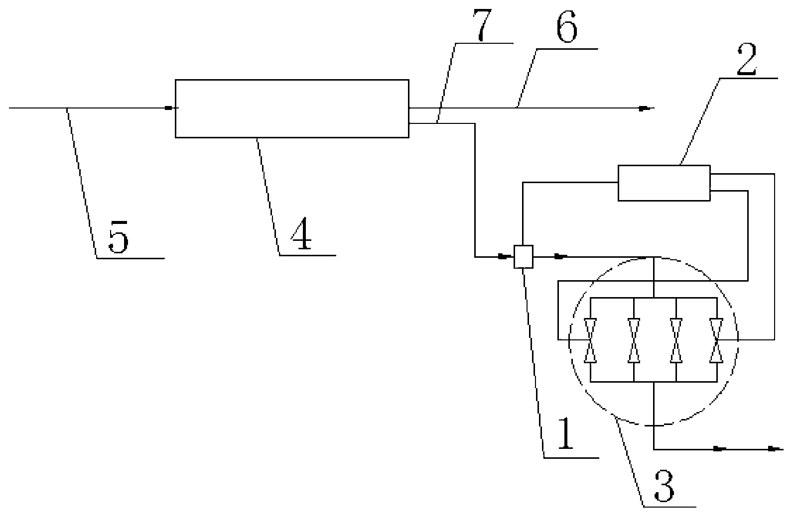 作為優選,電磁閥為一個進口和四個出口結構,四個出口的孔徑不同。電 磁閥中有四個出口,并且孔徑大小不同,具有不同的廢水比,可通過孔徑的大 小控制水量,避免沖洗水不足造成對反滲透膜的損壞或者沖洗水的浪費。
