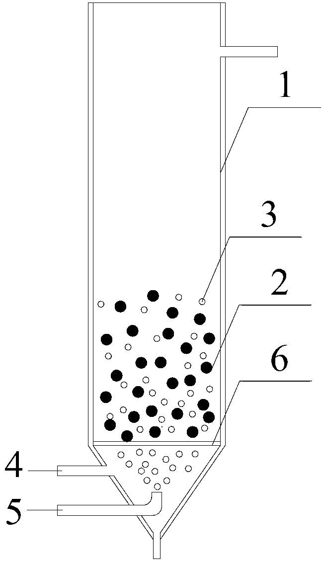 優(yōu)選地,在本發(fā)明提供的技術(shù)方案的基礎(chǔ)上,水面在填料上方0.1~1m處; 填料相互碰撞5min~2h后靜置沉淀5~60min,將沉淀物排出。