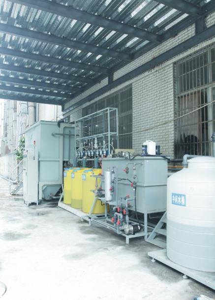 臨海市杜橋明宇光學眼鏡有限公司是一家專門從事眼鏡鏡片生產,配件制造的生產企業,該公司污水主要污染物為鏡片染色廢水,超聲波清洗廢水,塑料架振磨,板材架噴涂廢水。 本工程為其配置了40m3/d組合溶氣氣浮機+40m3/d獨立MBR系統,該系統有三點獨立自動加藥系統,觸摸屏+PLC智能測控,系統具備自動排泥、自動切換備用設備;實現系統運行參數全過程在線實時測控和無水、無藥、泵故障等自動停機報警系統。光學鏡片染色廢水色度>5000,CODcr大于1500-3000mg/L,廢水經一級混凝氣浮+水解+MBR工藝后出水清澈,色度<2,CODcr<80mg/L。
