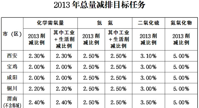 一、2013年度主要污染物總量減排目標
