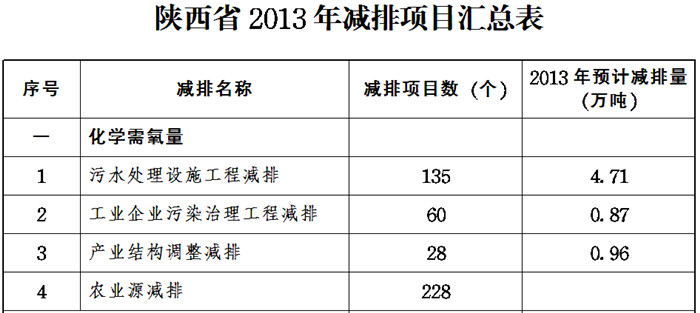 根據全省經濟社會發展情況預測,2013年全省化學需氧量、氨氮、二氧化硫和氮氧化物分別新增2.92萬噸、0.38萬噸、2.29萬噸(不含火電、鋼鐵)和7.46萬噸,在消化新增量的基礎上要完成2013年度減排目標,需實施以下減排項目。
