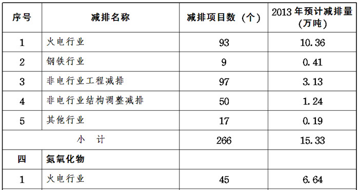 (三)二氧化硫。共安排減排項目266個,預計減排15.33萬噸。