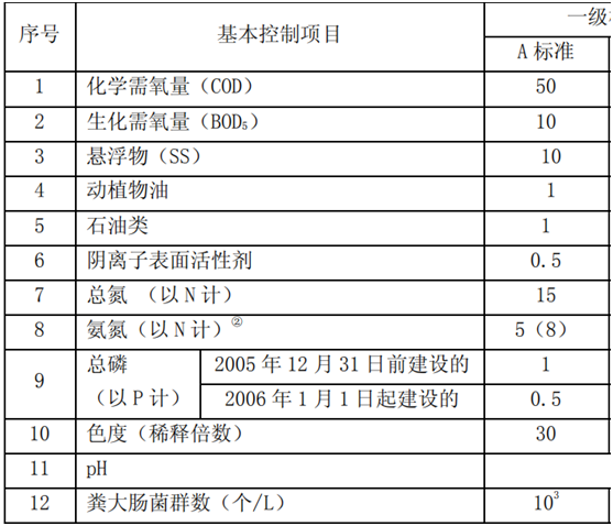 GB 18918-2002 《城鎮污水處理廠污染物排放標準》一級標準共要求指標12項,其中化學需氧量(COD)與懸浮物(SS)以及氨氮和總磷是常規重點控制的污染物指標,具體詳見下表內容