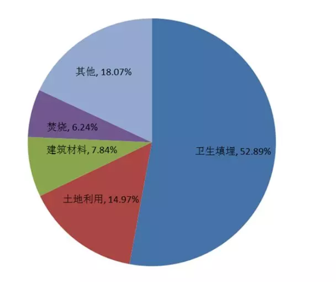 數據顯示(如下圖1所示),當前全國污水處理廠產生的污泥,50%以上以衛生填埋的方法進行了處理處置,15%的污泥進行了土地利用,6%的污泥以焚燒的方式進行處理,8%的污泥經處理處置后進行了建筑材料利用,約18%的污泥去向不明。(注:之所以說18%的污泥不知去向,是因為在調研時,此部分污泥產生量的單位在處置方式上選擇了其他處置方式的污水處理廠,很大程度上是對污泥進行了不當處置,去向不明)。一半以上的含水率80%的濕污泥采用了填埋的簡易處置方式,這種方式是一種過渡性措施,二次污染的風險嚴重,而且,目前很多地方已經沒地可埋。