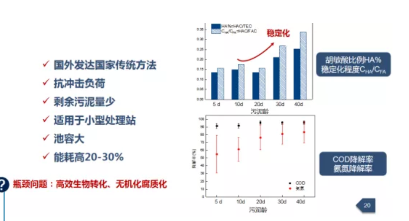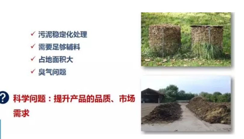 與城市相比我們認為農村的污泥最重要的是要實現穩定化的處理。農村的污泥為什么要進行穩定化的處理呢,就比如過去我們農村家里為什么要去漚肥,要把它進行易降解的有機物進行分解,因為如果沒有漚肥的話會有病毒傳播。對未經穩定化處理的污泥進行污泥處置時,在運輸、轉運的過程中可能會有有機物的腐敗、嗅味等二次污染的風險;如果回到水體、原水40%-50%的COD也會污染水體,那么減排目標就會大打折扣。生物穩定化處理可以去除約30%的易腐有機物,促進腐質化作用,有利于N、P、K的保留以及致病菌的控制,從而解決衛生問題,提高土壤品質和養分,降低病原微生物。