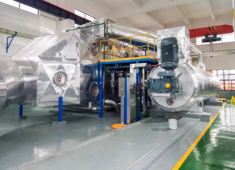 而將這些污泥轉(zhuǎn)化成“燃料”則需要三道工序。在廠區(qū)就有這么一臺(tái)神秘設(shè)備,它叫“水平薄層蒸發(fā)器”