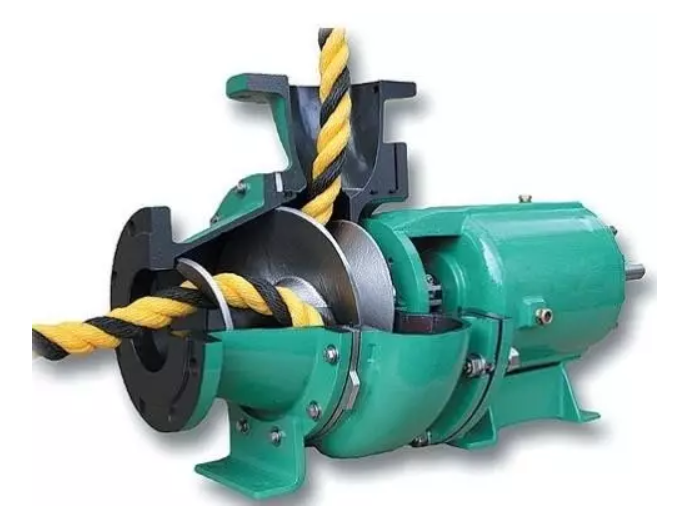 同時,傳統的離心泵在輸送纖維固體時更是無能為力。傳統無堵塞泵所宣稱的通過固體的球形顆粒直徑只是針對較規則固體顆粒而言,并不能反應輸送纖維物體的能力。但實際上,當通過較多數量的纖維物體時(如頭發、女士長筒襪等),這些纖維物在進入泵體后被葉輪勾住,纏繞在葉輪上,直到水泵停轉。