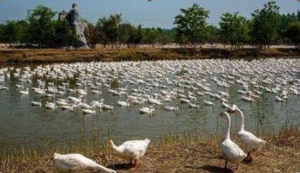 鵝場的污水主要是鵝舍沖洗廢水和設備沖洗水,污水不能任其排放。一般須先經物理處理(機械處理),再進行生物處理后排放或循環使用。物理處理是使用沉淀、分離等方法,將污水中的固形物分離出來,固形物能成堆放置,便于貯存,可作堆肥處理。液體中有機物含量較低時,可用于灌溉農田或排入魚塘;有機物含量仍很高時,應再進行生物處理。生物處理是將污水輸入氧化池、生物塘等,利用污水中微生物的作用,通過需氧或厭氧發酵來分解其中的有機物,使水質達到排放要求。