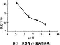 從圖2中可以看出,隨著pH值的增大,上清液濁度減小,最佳pH值為9左右。而且從圖3可以看出pH值增大時,沉淀速度加大。