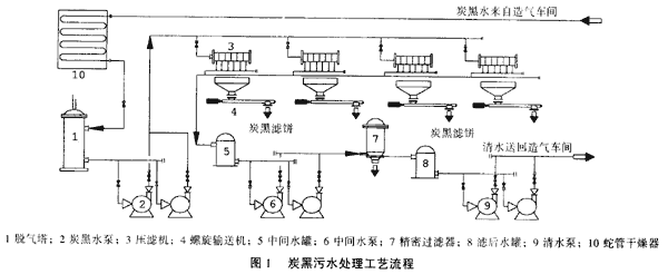 炭黑污水處理裝置自投產以來,一直運行良好,經裝置處理后的污水,可全部達標回用,并副產粗炭黑,成品含水率小于70%;壓濾機濾布的實際使用周期大于3個月,卸料操作方便,沒有出現濾布粘料情況;運行維護費用較低,總運行費用在30萬元/a以內;經濟效益顯著,年生產按8000h計,其回收軟化水和炭黑的經濟效益約為206.2萬元/a。達到了工藝可行、設計合理、運行穩定、操作方便、維護費用低等預期目的。
