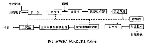 處理水量:300 m3/d,其中豆奶生產廢水250 m3/d,生活污水 50 m3/d。