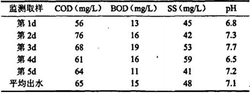 該廢水處理系統經過三個多月的調試進入正常運行,正常運行后連續sd的監測結果見表2。從表2可知該系統運行可靠,處理效果較好,出水水質穩定達標,并且有200m3/d處理后廢水又回用于車間生產用水、廠區綠化和雜用水。
