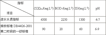 ①UASB反應器:污泥濃度30g/L;容積負荷9.5kg[COD]/(m3.d);CODCr去除率85%。