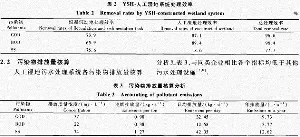 1)YSH一人工濕地處理造紙廢水,可充分利用土壤一微生物一植物對有機(jī)物的去除能力,在pH7.30—7.80條件下,主要污染物COD,BOD和ss的去除率分別為96.6% ,96.4% 和77.7% ,處理出水不僅達(dá)標(biāo)而且可用于農(nóng)灌,實現(xiàn)了廢水資源化.