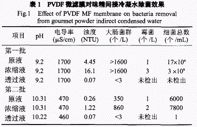 2.2 PVDF微濾膜對味精間接冷凝水除菌效果