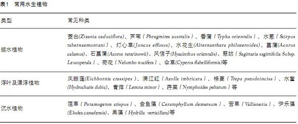 通過對相關文獻的搜集整理得知,目前所涉及的水生植物主要有以下幾類(表1)。