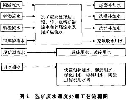 專業人士經過大量的水處理試驗和選礦對比試驗綜合研究,總結出一條解決礦山選礦廢水的較好方案。以鉛鋅礦為例,其工藝流程如圖2所示。