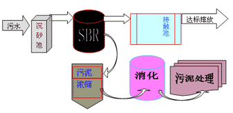 SBR工藝是一種按間歇曝氣方式來運行的一種改良的活性污泥法,其特征是在運行上的有序和間歇操作。SBR反應池集均化、初沉、生物降解、二沉和閑置等功能于一池,無污泥回流系統,即適用于組件式構造方法,又有利于廢水處理廠的擴建與改造。SBR法的工藝特征順應了當代污水處理所要求的簡易、高效、節能、靈活、多功能的發展趨勢,也符合“三低一少”技術要求,既低建設費用低運行費用,低操作管理要求,二次污染物排放少的污水處理技術。