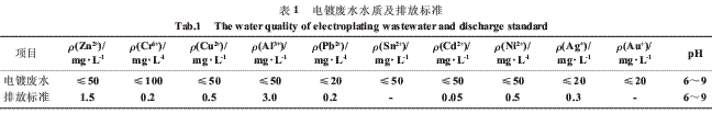 該公司表面處理車間廢水水量比較穩定為25m·3h-1,其中電鍍廢水為10 m·3h-1,酸洗磷化廢水為15 m·3h-1。其設計進水水質和排放標準分別見表1和表2。