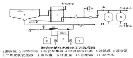 ●一般來說,游泳池水質相對較穩定,水質污染程度與游泳人數成正比。二氧化氯一般選擇濾后投加的方式,二氧化氯投加到過濾后的管道中,經管道混合器與循環水充分混合后回到游泳池,在池內進行充分地接觸,可在較長的時間內保持持續的殺菌作用。(來源:谷騰水網)