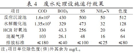 廢水處理設施運行效果見表4。由表4可得,其對COD、BOD5、SS、NH3-N、色度的去除率分別達到93.6%、93.9%、90.4%、68.0%、87.5%。