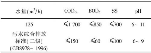 根據(jù)啤酒生產(chǎn)工藝特點(diǎn),生產(chǎn)過程中排放的主要污染物是pH、CODCr、BOD5和SS,其中,CODCr、BOD5、SS的濃度均在1500mg/L~2500mg/L之間,屬高濃度有機(jī)廢水。從新疆烏蘇啤酒有限責(zé)任公司生產(chǎn)運(yùn)行過程中產(chǎn)生的廢水水質(zhì)監(jiān)測(cè)資料分析,見表1,廢水中有機(jī)污染物濃度較高,采用常規(guī)生物處理技術(shù)很難實(shí)現(xiàn)達(dá)標(biāo)排放。